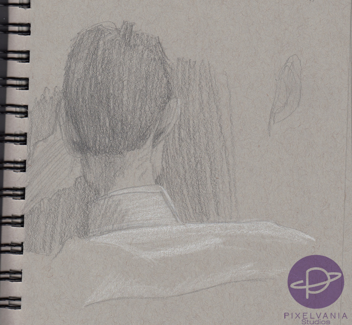 ArtChurch Sketches – Dark Blouse and Bun Hairdo.